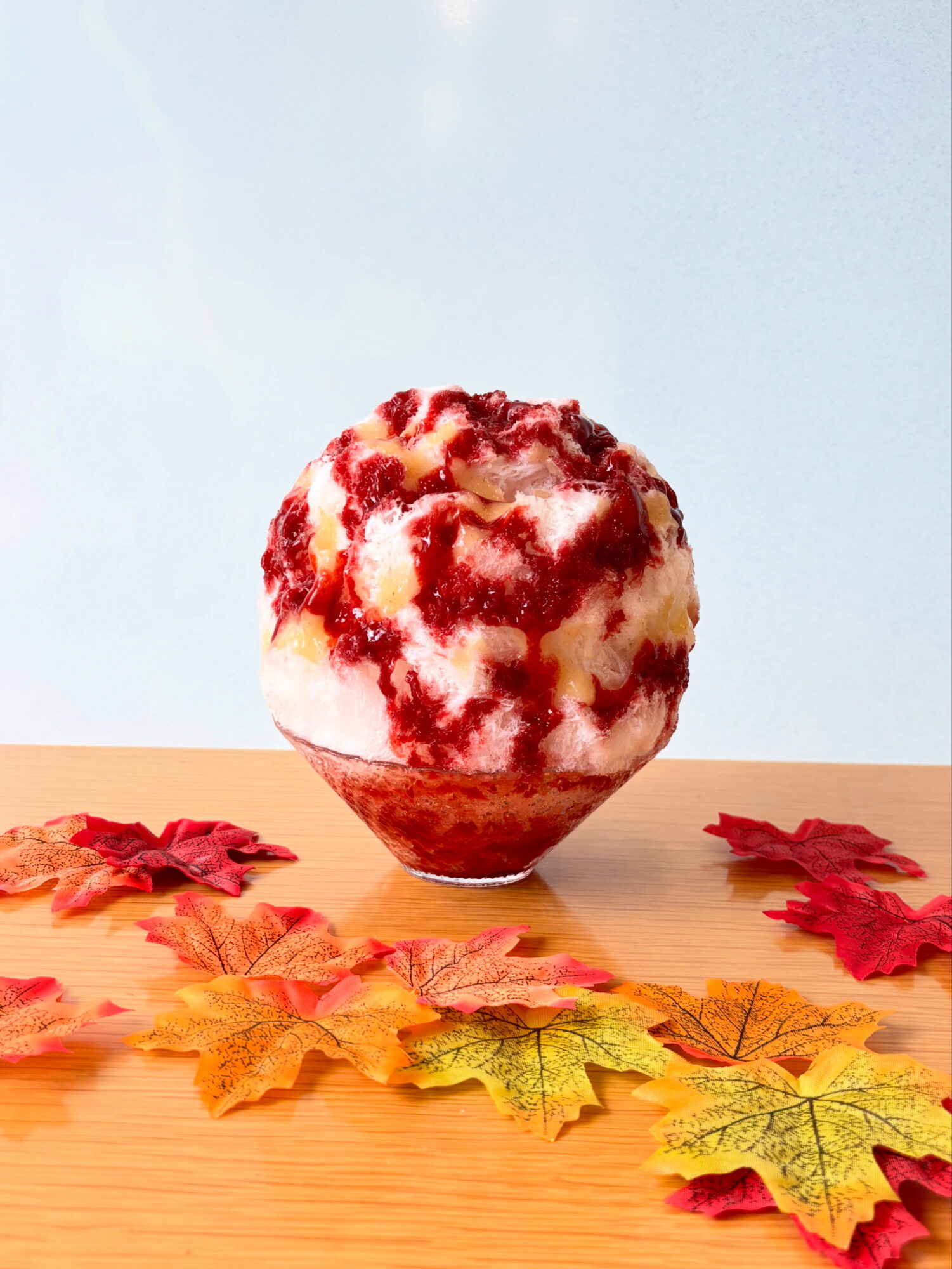 今が旬を使った贅沢なフルーツかき氷。じっくり煮込んだりんごのソースとゴロっと入った柿のコンポートがたまらない秋の味覚をたっぷり詰め込んだ商品です。九州産のマスカルポーネとキャラメルソースをここでも贅沢に使用。