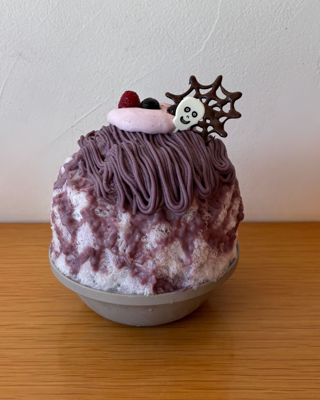 紫いもとカシスが織りなす、ハロウィン限定の魔法のかき氷。有機紫いものモンブランクリームと濃厚ソースにカシスの甘酸っぱい'トリック’をひとさじ。