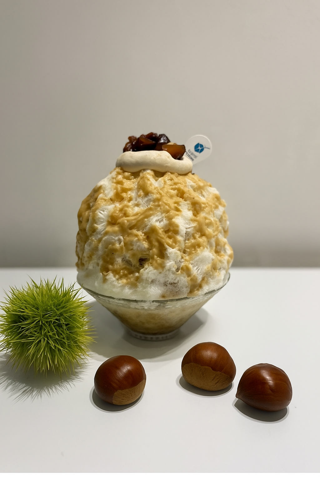ふんわりマロンクリームソースがたっぷりとかかった、栗の風味が際立つプレミアムなかき氷。 熊本県産の濃厚な和栗の渋皮煮を贅沢にトッピングし、栗好きにはたまらない味わいです。 中にはほうじ茶ソースのほのかな黒糖の甘みが隠され、ふわふわ氷に上品なアクセントをプラス。 栗の香ばしさとほうじ茶の奥深さが織りなす、秋のひとときを感じる一品です。