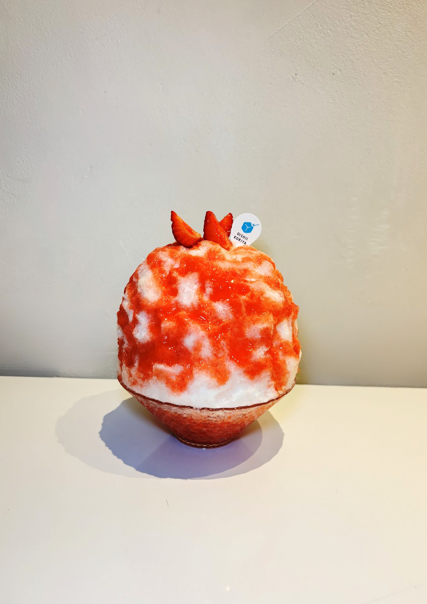 ふわふわのかき氷を手作りのお餅で包み込んだ新感覚のかき氷。中にはあまおう苺を贅沢に使用し、あずきとたっぷりのホイップクリームも。