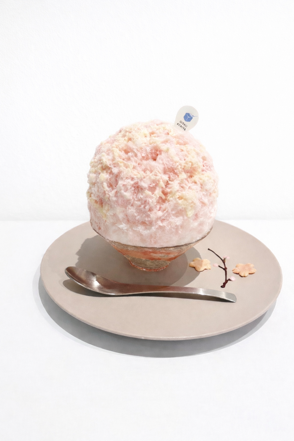 雪のようにやさしい白いかき氷。 ホワイトチョコソースをベースに、 スプーンを入れると ラズベリーヨーグルトの淡いピンク色が広がります。 中には ホワイトチョコムース、ホイップ、いちごを重ねて。 甘さと酸味のバランスがよく、 最後まで心地よく食べられる一杯に仕上げました。